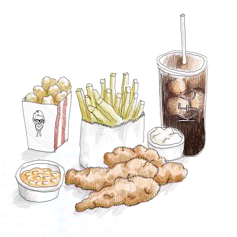 KFC's boneless banquet with beans, garlic mayo and pepsi (Print)